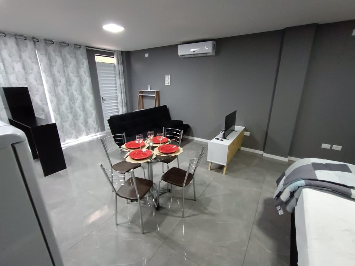 Nikmati apartemen yang luas dan cerah ini di pusat Iguazú. Tempat ini memiliki 2 kamar tidur, 2 kamar mandi lengkap, balkon dan pemanggang, ideal untuk bersantai setelah seharian berjalan kaki. Dapur dilengkapi dengan peralatan lengkap sehingga Anda bisa memasak dengan nyaman, dan dari balkon Anda bisa menikmati pemandangan hijau yang mengundang Anda untuk beristirahat. Lokasinya tak terkalahkan: Anda dekat dengan segalanya, dengan ketenangan untuk dinikmati di rumah. Selain jacuzzi, wifi cepat dan ruang kerja.