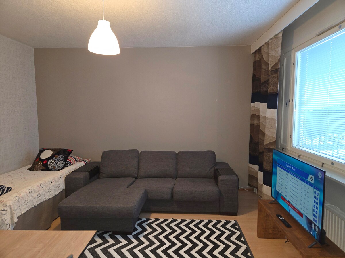Budaya, kebugaran, dan restoran dari depan pintu, di pusat kota. Apa yang ingin Anda lakukan hari ini? *Gereja 400 m * Pusat Budaya 400 m (dalam renovasi) * Olvi Hall dan museum tempat pembuatan bir yang menakjubkan (biaya masuk € 0) 440 juta *Market Square 130m * pusat perbelanjaan 30 m *jalur ski 160 m *Area Acara Luuniemi (Oluset, Runni Rock) 240 m *lapangan tenis 1000 m * golf mini 460 m *pub 300 m *pantai 250 mnt * lokasi latihan di sekitar 250 m * Pusat kebugaran 24/7 400 m Ruang tamu digunakan bersama dengan tirai tengah jika diperlukan 2 sebagai ruang tersendiri.