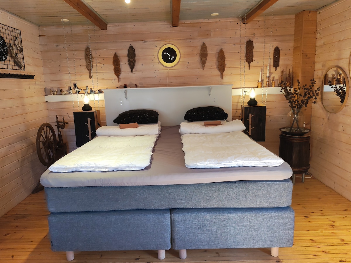 Selamat datang di dupleks yang luas dan nyaman di Kettula Bay, Kuopio! Apartemen memiliki pintu masuknya sendiri dan check-in fleksibel berkat kotak kuncinya. Kamar tidur memiliki tempat tidur double selebar 160 cm dengan kasur Tempur berkualitas tinggi, dan ruang tamu memiliki sofa bed dan dua tempat tidur single terpisah – ada cukup ruang untuk rombongan yang lebih besar. Pompa panas udara yang memberikan pendinginan untuk meningkatkan kenyamanan hidup. Ada tempat parkir gratis di halaman dan hewan peliharaan diterima dengan hangat.