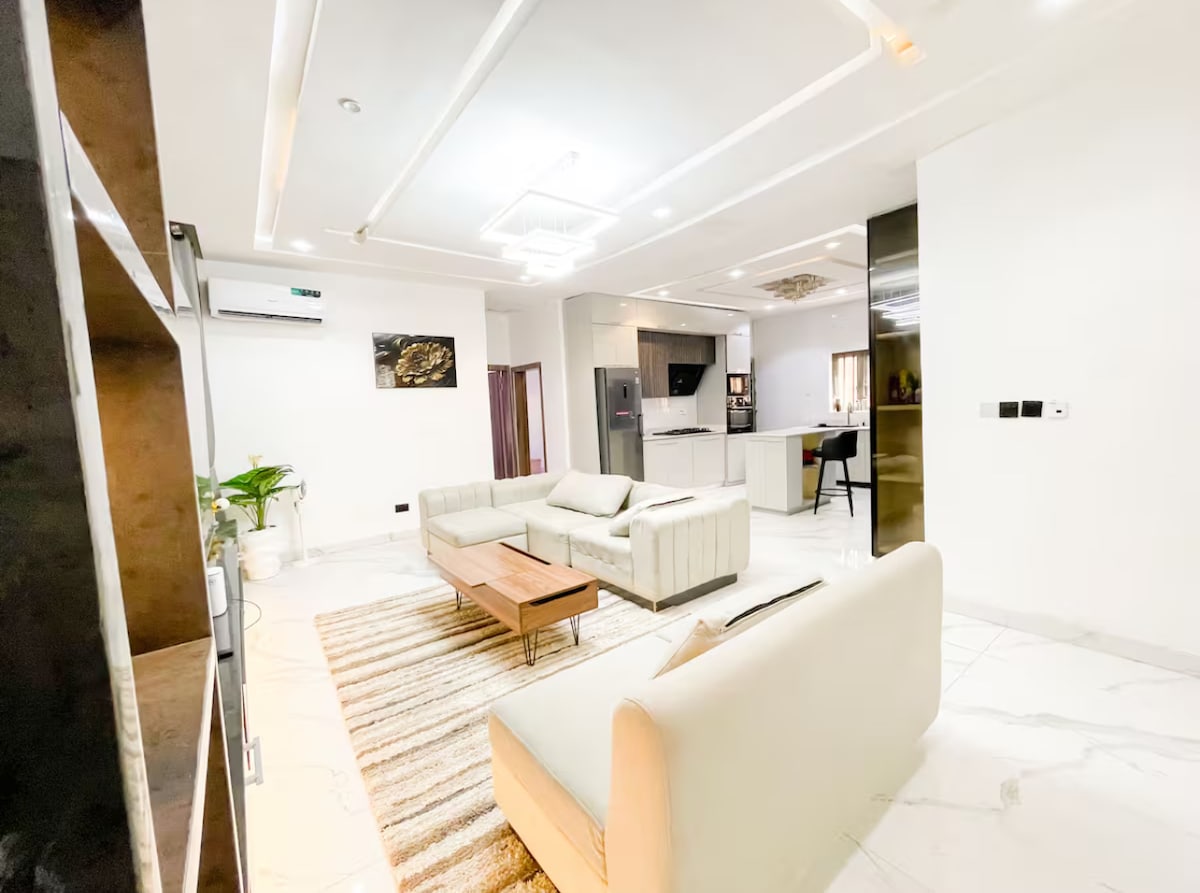Ultra-Luxury 4-Bedroom Smart Home with private carport & outdoor space. Enjoy self check-in, uninterrupted power, smart TVs in all rooms, PS5, snooker/game lounge, walk-in bar, and a fully equipped kitchen. Sleep exceptionally well on customized spring mattresses with premium pillows. Complimentary cleaning every other day. Ideal for families, executives & long stays.