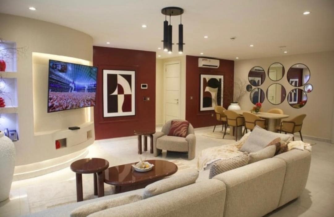 Rasakan kenyamanan modern di apartemen 3 kamar tidur yang dirancang dengan indah ini, cocok untuk keluarga, rombongan, dan pelawat bisnis. Setiap sudut dilengkapi perabotan yang apik—mulai dari kamar tidur nyaman dengan perlengkapan tidur bergaya hotel hingga ruang tamu dan ruang makan elegan yang dibuat untuk bersantai dan menghibur. Pencahayaan lembut, karya seni yang dipilih, kain premium, dan nuansa netral menciptakan suasana yang tenang dan mewah di seluruh rumah.