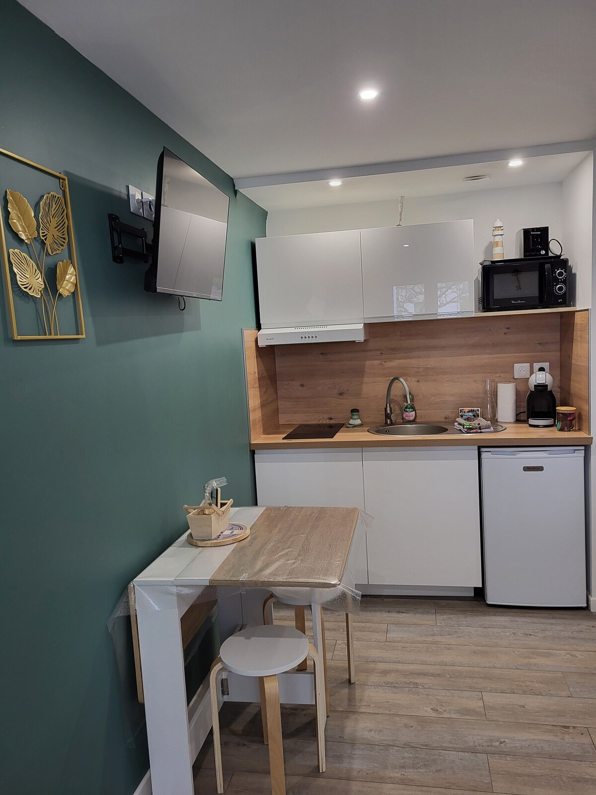 T1 yang sangat bagus seluas 31m2, direnovasi sepenuhnya pada Juni 2021, di lantai dasar tempat tinggal yang tenang, 300 m dari pusat kota dan 300 m dari pantai. Semua kenyamanan dengan TV layar besar, Canal+, dapur lengkap, tempat tidur sofa 160cm dengan kasur 18cm, halaman pribadi menghadap ke selatan seluas 15m2 dengan area makan, kursi berjemur, tanaman, dll. Sepeda (bukan baru tetapi diservis) disediakan.