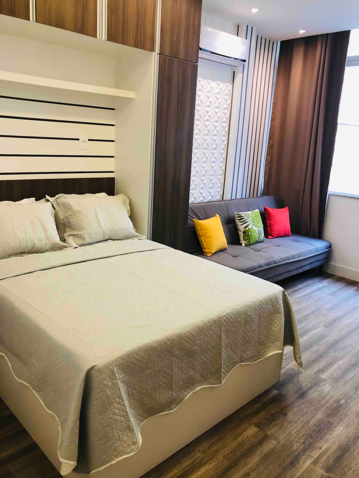 Adorável estúdio na Avenida Nossa Senhora de Copacabana para uma ou duas pessoas. A duas quadras da praia, 5 minutos de caminhada, perto de tudo: metrô, comércio, restaurantes, supermercados. Cama de casal + sofá-cama. Ar condicionado split. Microondas, geladeira, máquina Nespresso e filtro d'água. Wi-Fi, Smart TV + de 100 canais Cadeiras de praia e guarda sol. Limpeza e higiene impecáveis (ver comentários). Check in e check out flexíveis.