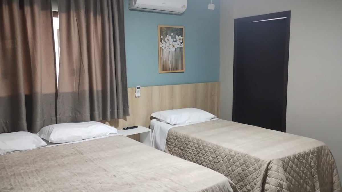 “Encontre o equilíbrio perfeito entre tranquilidade e conveniência em nossa suite com banheira ✅Suíte confortável com banheira de hidromassagem aquecida ✅Ar condicionado split ✅Acomoda confortavelmente até 5 pessoas ✅Sofá-cama confortável ✅4 camas de solteiro, sendo duas montadas em formato de casal, mas podem ser separadas a pedido ✅Roupas de cama limpas e cheirosas ✅Toalhas de Banho