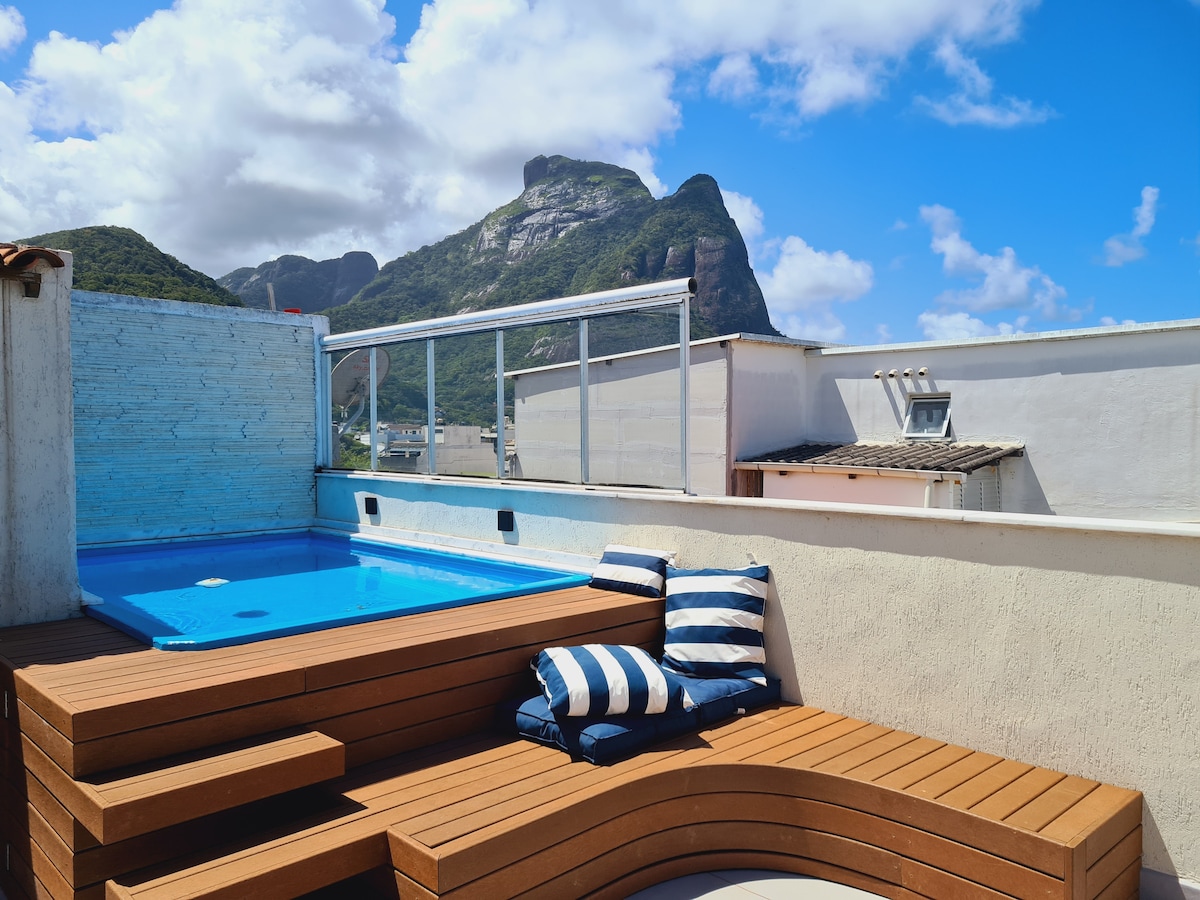 Suite tamu yang luas di penthouse, dengan pemandangan Christ the Redeemer dan Rodrigo de Freitas Lagoon yang menakjubkan. Tempat ini memiliki area luar ruangan yang luas dengan kolam renang yang dipanaskan dan air terjun, lavabo, ruang uap dengan shower, dapur, barbekyu, kulkas, cooktop, microwave, Airfryer, dan peralatan dapur. Akses ke suite ini independen. Suite ini berjarak dua langkah dari jalur sepeda Rodrigo de Freitas Lagoa, 5 menit berjalan kaki dari Kebun Raya, 10 menit berkendara ke Copacabana, Leblon dan pantai Ipanema.