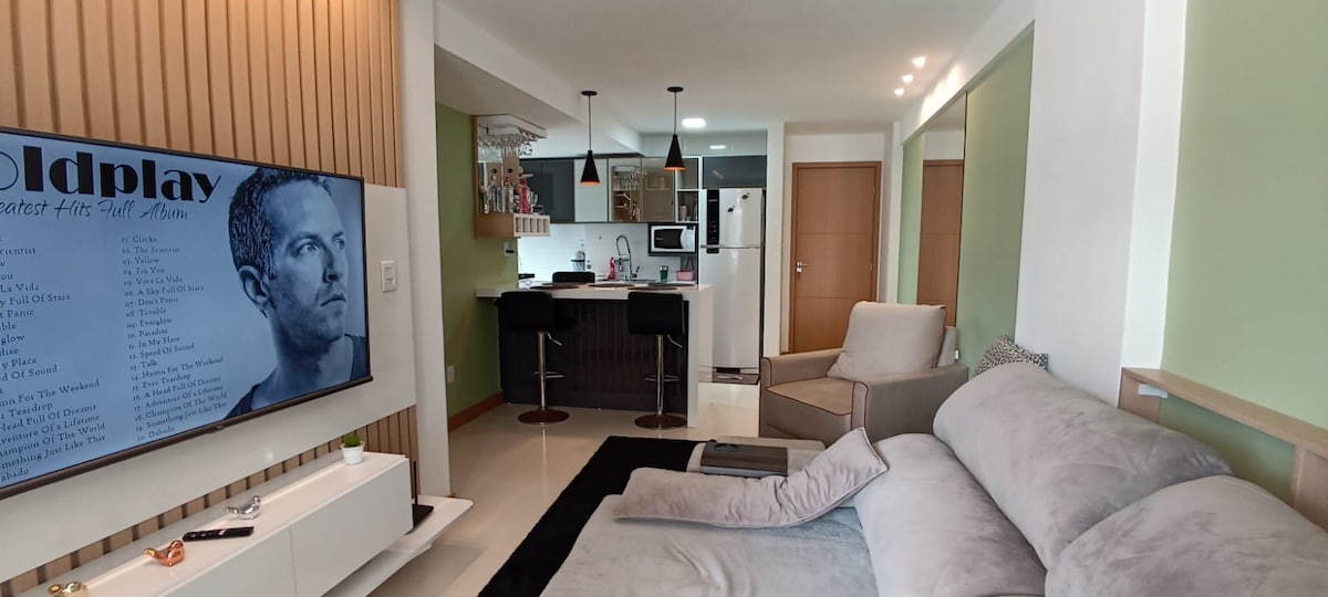 Bersantai di tempat unik ini hanya beberapa meter dari pantai paling terkenal di Ilhéus. Apartemen baru 2/4, 1 suite, sangat lengkap, modern dan nyaman.Tempat ini memiliki Wi-Fi, dua Smart TV, kunci elektronik, AC di semua kamar, area laundry dengan mesin cuci dan pengering, serta dapur lengkap. Semua ini di kawasan pemukiman yang aman, dengan kolam renang, pusat kebugaran, area anak-anak, area barbekyu, dan lapangan multi-olahraga.Sempurna untuk dinikmati bersama keluarga dan teman di area paling berharga di Ilhéus.