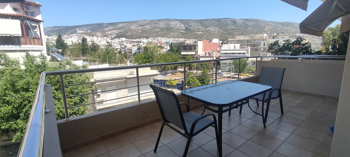 Sebuah flat independen lantai 1 yang besar dan dipulihkan di pusat Ilioupoli (Suncity dalam bahasa Inggris), di lingkungan yang tenang, berjarak 100 m dari alun - alun dengan toko roti, pasar bio, kedai kopi, bank, pos, dll. 100 m jauhnya ada layanan bus yang membawa Anda dalam jarak 10' ke stasiun metro "Dafni" (yang membawa Anda dalam waktu 6 menit ke Museum Acropolis dan pusat bersejarah Athena). Tepi pantai Attica yang menakjubkan hanya berjarak 5 km dengan mobil/taksi.
