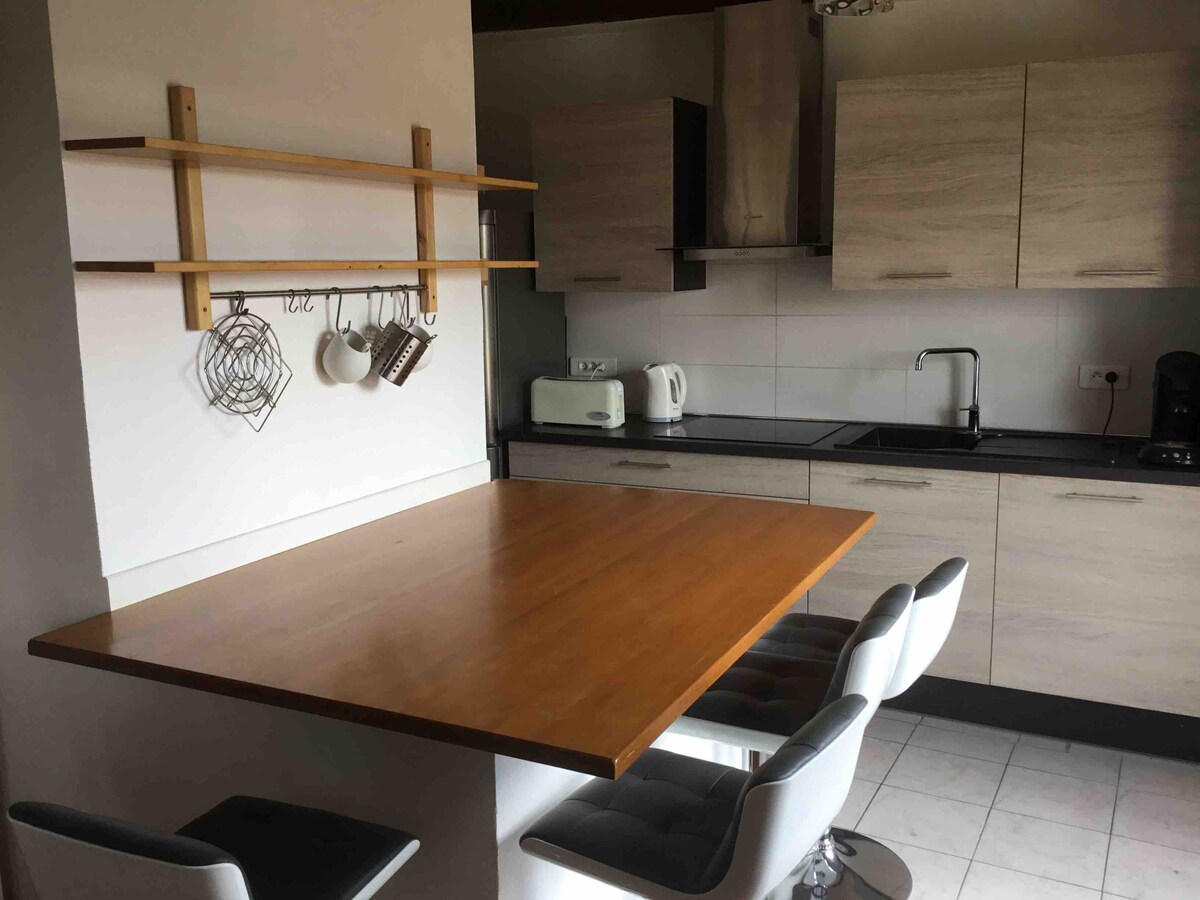Ingin tenang, akomodasi kepompong? Datang dan menginaplah di apartemen yang indah ini. Sorotan utamanya: - Apartemen tanpa tangga. - Teras seluas 50 m2. Dekorasinya yang trendi. - Satu kamar mandi modern dengan satu pancuran dan satu bak mandi. - Dapur dengan perlengkapan lengkap. - Tempat parkir dan parkir gratis di depan gedung. Akomodasi ini dilarang untuk pesta atau malam yang berisik.
