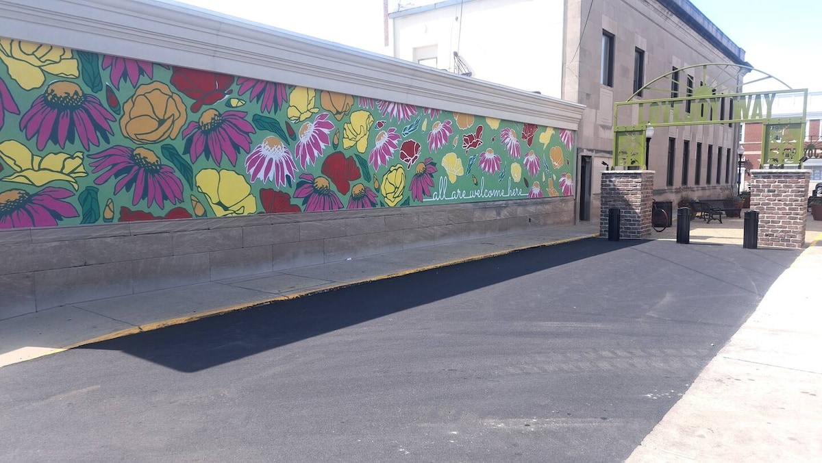 Anda tidak akan ingin meninggalkan tempat yang menawan dan unik ini. The Yellow Door adalah kamar nyaman yang berada di dalam garasi parkir tiga lantai yang bersejarah di pusat kota Shelbyville. Lokasinya hanya satu blok dari restoran, bioskop, beberapa toko lokal, dan The Foxmore . Kami berjarak satu mil dari Spruce Street Studio, Danau Shelbyville yang indah, pantai, peluncuran perahu, dan Forest Park (kolam renang, memancing, jalan setapak, disc golf, bangunan bersejarah Chautauqua).