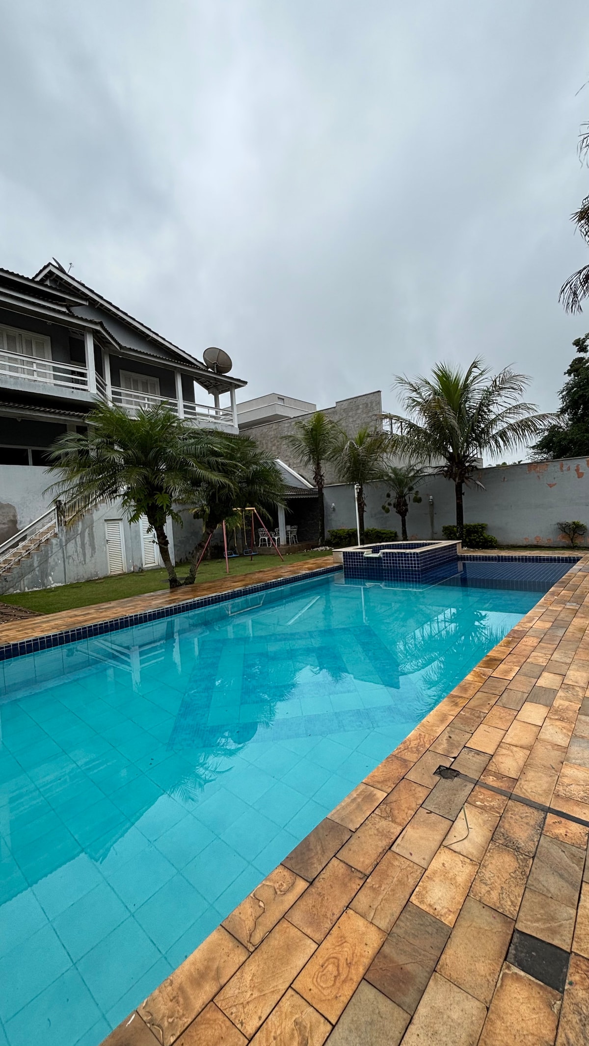 Dekat bandara Viracopos 12 menit dari pusat Indaiatuba, semuanya dikelilingi dan sangat aman. Akses mudah dan dengan perdagangan terdekat. Kapasitas 15 orang, 4 kamar tidur, 4 kamar mandi, ruang tamu, dapur dengan semua peralatan makan, semua dengan kipas angin langit - langit, 3 kulkas, kompor besar. Balkon ditutupi dengan meja dan kursi untuk 20 orang, kolam renang, lapangan sepak bola, ruang permainan, dan barbekyu dengan oven dan kompor kayu (atas)! Obs. Kami tidak menyewakan untuk acara atau pesta, Anda tidak bisa berisik!