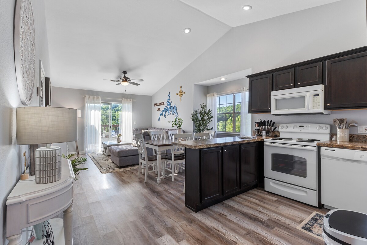 Kondominium 2 kamar tidur/2 kamar mandi di tepi danau yang indah! Nikmati kopi Anda dari dek belakang yang menghadap Table Rock Lake. Ini adalah kompleks terdekat dengan Silver Dollar City, memungkinkan Anda menghindari lalu lintas dan antrean panjang. Anda bisa melihat dan mendengar roller coaster dari dek depan! Anggap seperti rumah Anda di kondominium kami yang terisi penuh. Pergilah ke kota, atau nikmati malam yang tenang. Kolam renang terletak di properti dan Anda juga bisa berjalan kaki ke danau. Biarkan kami berbagi kondominium kami yang luar biasa dengan Anda!