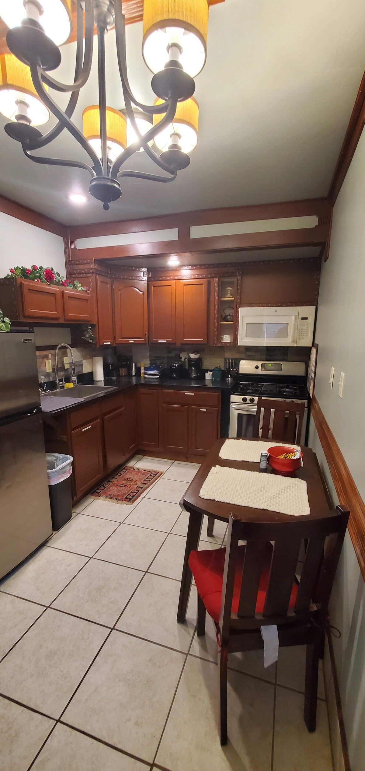 Dekat dengan Pusat Kota, 1 blok dari Massachusetts Ave. Memiliki segalanya! Parkir berpagar, Dapur lengkap dengan semua peralatan makan dan lain - lain, microwave, airfryer, pembuat kopi, Ninja Blender, pemanggang roti,kompor, kulkas, pemanas sentral dan udara panas sentral, mesin cuci/pengering di unit, kursi ekstra dan meja kartu. Tempat tidur: bisa menampung 5 hingga 7 orang (tempat tidur gueen, Futon ukuran penuh, Daybed dengan tempat tidur Trundle, dan tempat tidur lipat tipe hotel. Tersedia tempat tidur bayi. Smart tv 43" dan 48 ", WIFI, Dek dengan grille Kamera keamanan Ayo nikmati Indy