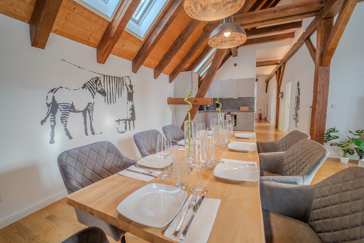 ☆ SELAMAT DATANG DI LUXOMES ☆ Apartemen 3,5 kamar yang baru direnovasi ini cocok untuk 7 orang dan ditandai dengan desain perkotaannya. → Check - in 24 jam Apartemen Kota Tua→ Pusat → 2 queen box spring bed, 1 single box spring bed & premium sofa bed TV pintar→ 65 & 55 " → Dapur berfasilitas lengkap dengan mesin cuci piring, mesin cuci - pengering Pembuat kopi→ Nespresso → Meßmer pilihan teh premium → Netflix, Disney +& PayTV, wifi berkecepatan tinggi