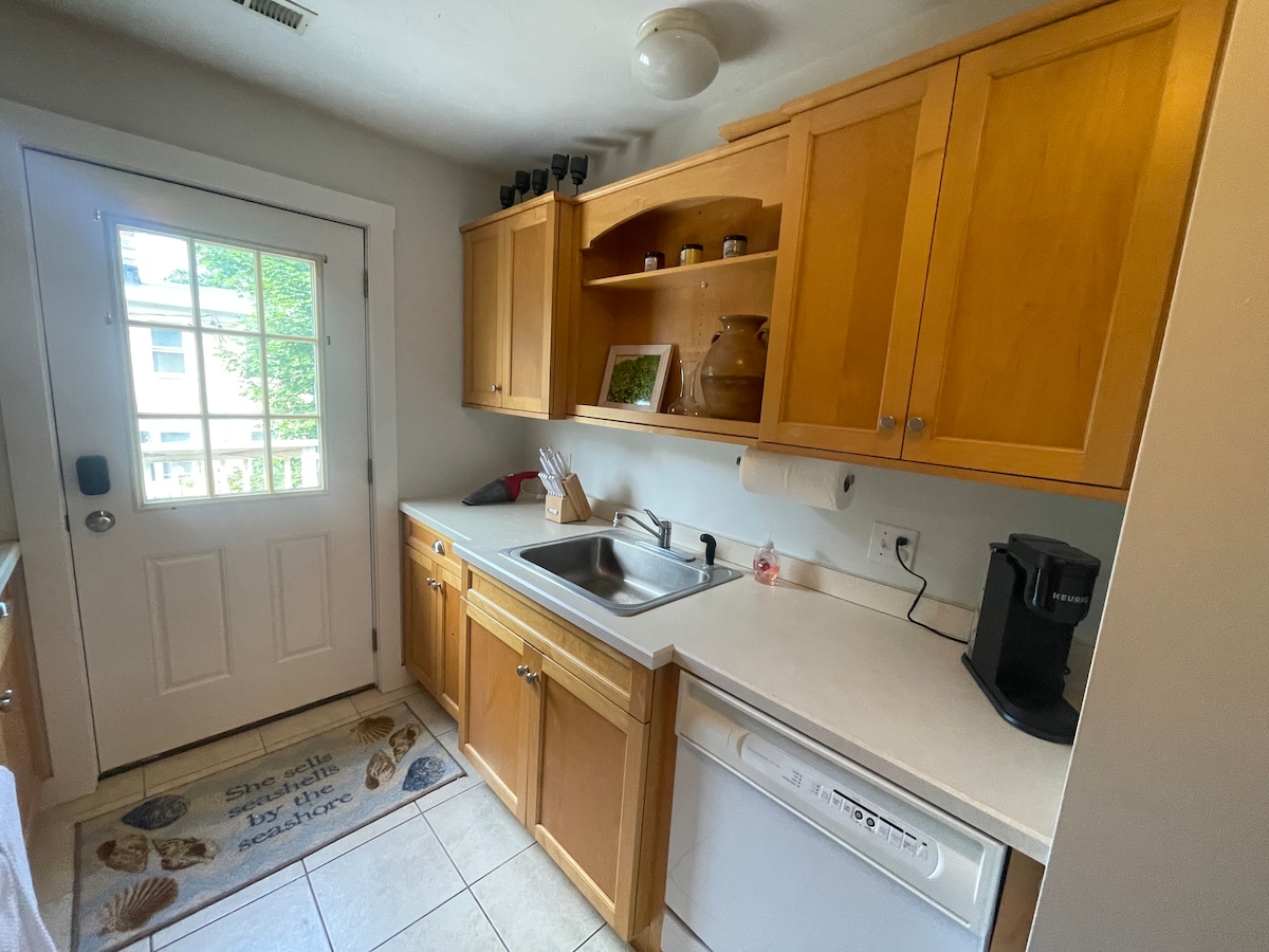 Lokasi utama - tepat di seberang jalan dari pantai berpasir, beberapa menit berjalan kaki ke pelabuhan, pusat kota, dan transportasi (perahu, bus, dll.). Apartemen satu kamar tidur setingkat jalan yang indah ini berada di seberang lautan, tempat Anda bisa berenang dan menikmati pantai. Apartemen ini baru - baru ini direnovasi dan memiliki kamar tidur kecil dengan tempat tidur berukuran queen, kamar mandi kecil, dapur lengkap, dan area ruang tamu dengan sofa tarik. Nyaman untuk naik feri ke Oak Bluffs dan berjalan ke apartemen