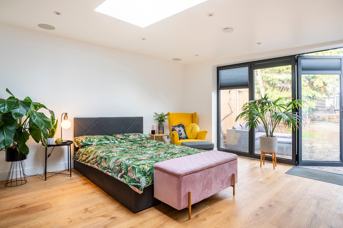 Apartemen studio besar baru dengan standar yang sangat tinggi di bagian belakang taman kami dengan Dapur,Kamar Mandi, dan ruang tidur /ruang tamu yang luas dengan ruang kerja khusus dan furnitur luar ruangan. Kami berada di kota Loughton yang indah, jarak berjalan kaki ke Epping Forrest dan 30 -35 menit berkendara ke Bandara Stansted dan 1,5 Mile ke Stasiun Loughton. Parkir gratis di front drive, WI - FI gratis, Smart TV 65", Speaker Sistem Suara Bluetooth.