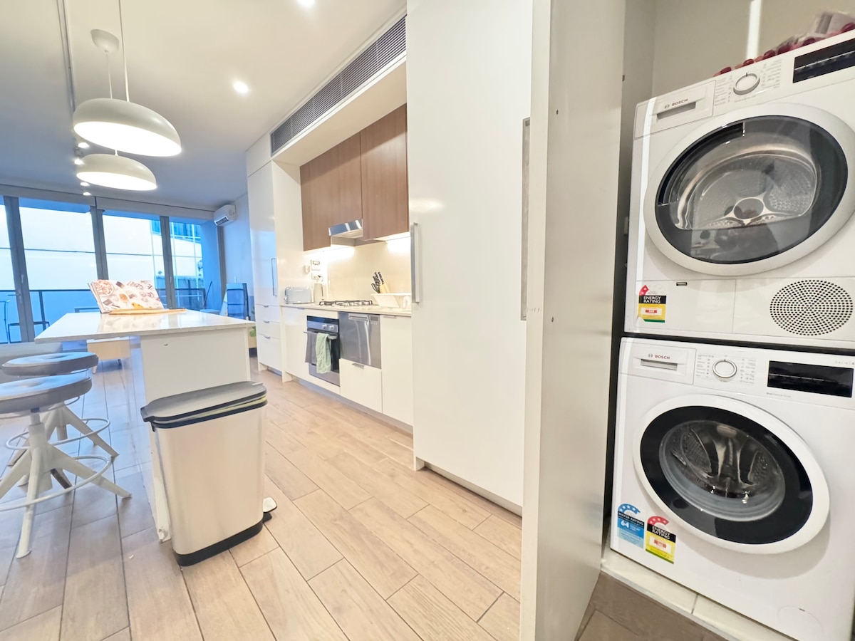 Konversi gudang 2 kamar tidur modern ini menawarkan kenyamanan tertinggi dengan berjalan kaki ke Rumah Sakit RPA, Sydney Uni, dan King Street di Newtown. Fitur apartemen: Parkir bawah tanah yang aman, peralatan dapur baru, 2 kamar tidur dengan banyak penyimpanan, mesin cuci piring, microwave, cucian tersembunyi dengan mesin cuci & pengering, meja belajar & wifi, Smart TV, ruang tamu & ruang makan terbuka yang dipenuhi cahaya dan AC. Ikuti kami: @ camperdown_ condo PID - STRA -30697