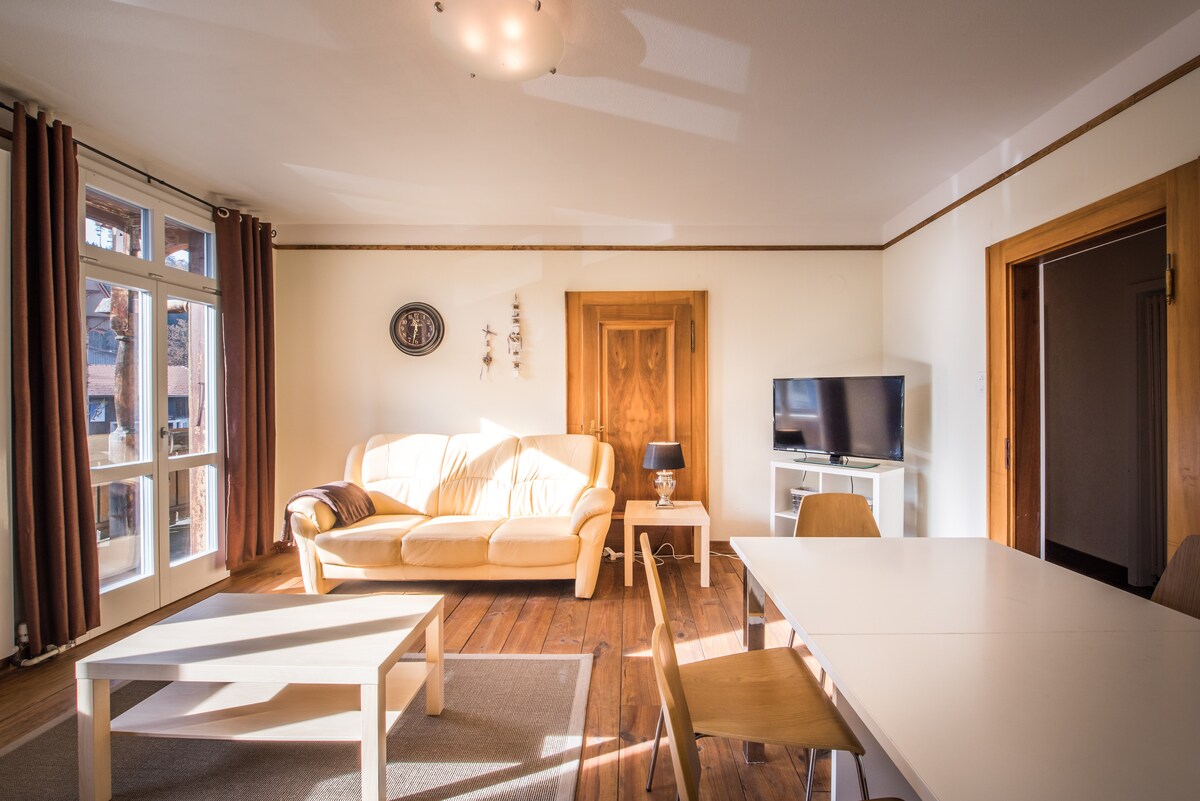 Swiss Chalet yang terdaftar secara historis ini, menawarkan apartemen dengan pemandangan luar biasa dari balkon, kamar cerah yang luas, dapur lengkap, wifi gratis, ruang tamu, dan terletak di lokasi yang sempurna untuk menjelajahi area Interlaken. Hanya 10 menit berjalan kaki ke pusat kota, jalur bus yang bagus dan akses ke stasiun, dan ke daerah sekitarnya. Toko kelontong berjarak 50 m, buka 7 hari seminggu dan toko roti lokal yang luar biasa di seberang jalan yang menawarkan hidangan lezat di wilayah ini.