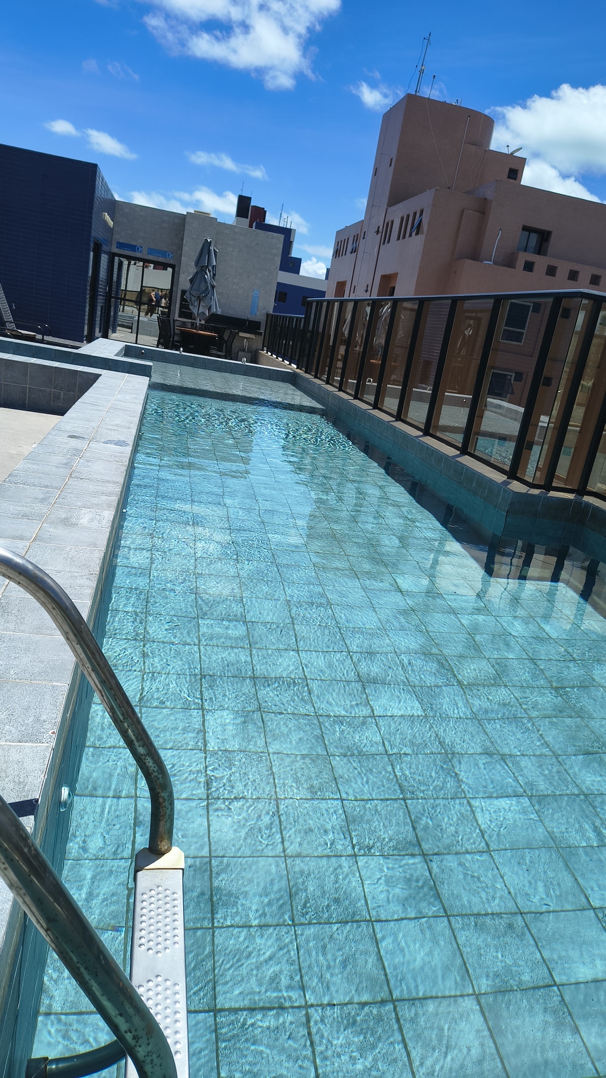 Selamat menginap di apartemen kami yang nyaman dengan kolam renang infinity yang indah dan bar pendukung atap dengan pemandangan istimewa aurora. Properti kami baru dan dilengkapi, dengan 1 kamar tidur (dengan AC) di dalam kamar mandi, pancuran air panas, kulkas, kompor, microwave, peralatan dapur, seprai, handuk, dan seprai berkualitas tinggi, wifi, dan garasi pribadi. Lokasi yang bagus, dekat dengan supermarket, apotek, toko roti, pameran buah, dan bar.