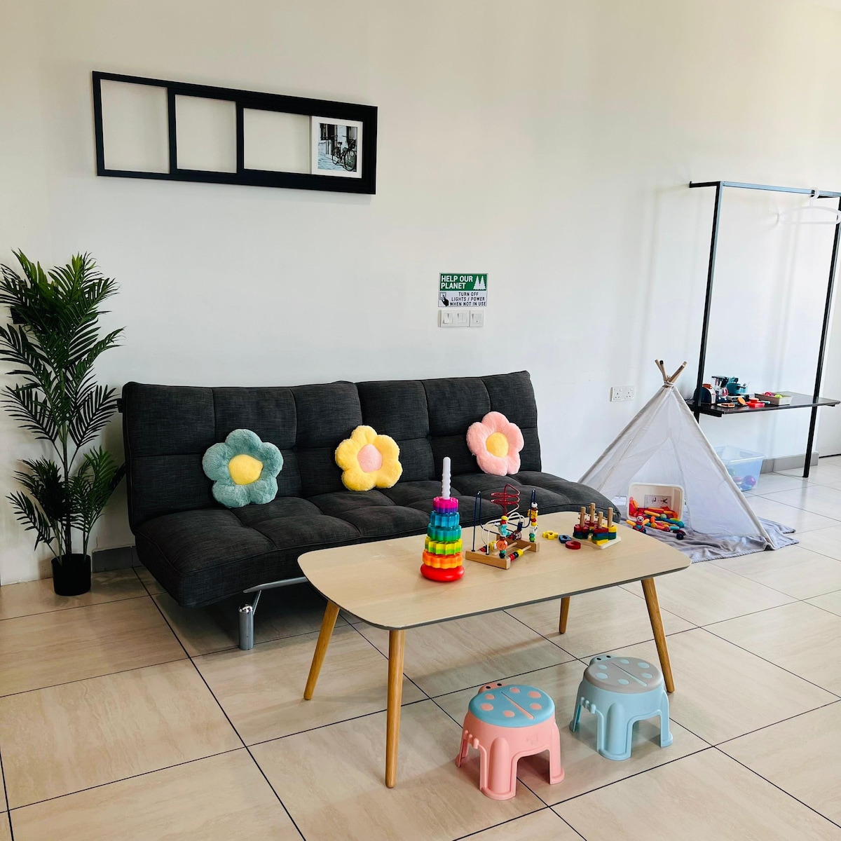 A_ Door Guest House adalah unit sudut dengan 3 kamar tidur & 2 kamar mandi dengan rumput buatan yang nyaman di balkon tempat Anda bisa menikmati pemandangan malam kota. Ini adalah rumah berdesain bergaya modern yang ideal untuk eksekutif bisnis atau keluarga modern yang aktif. *dengan AC * kami memiliki Unifi Broadband dan TV Box untuk Anda Ruang ✦Kamar tidur 1 - dengan kamar mandi 1 tempat tidur queen + 1 tempat tidur super single ✦Kamar tidur 2 1 tempat tidur queen + 1 tempat tidur super single ✦Kamar tidur 3 - 1 tempat tidur sofa ✦ 1 kamar mandi bersama