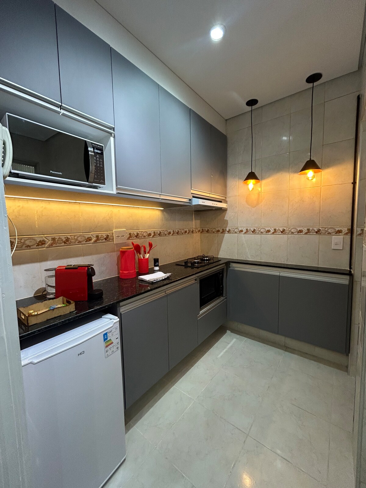 Studio apartment in an 18-story building, fully furnished, in the heart of Piracicaba, with 1 covered parking space, piped gas, water filter, appliances, intercom, 24-hour concierge, Wi-Fi, 50-inch Smart TV, electronic lock, security, and discretion. Close to markets, banks, bakeries, restaurants, churches, and shopping. Accommodates two guests with a double bed and an extra single mattress for a child. Small pets are welcome.