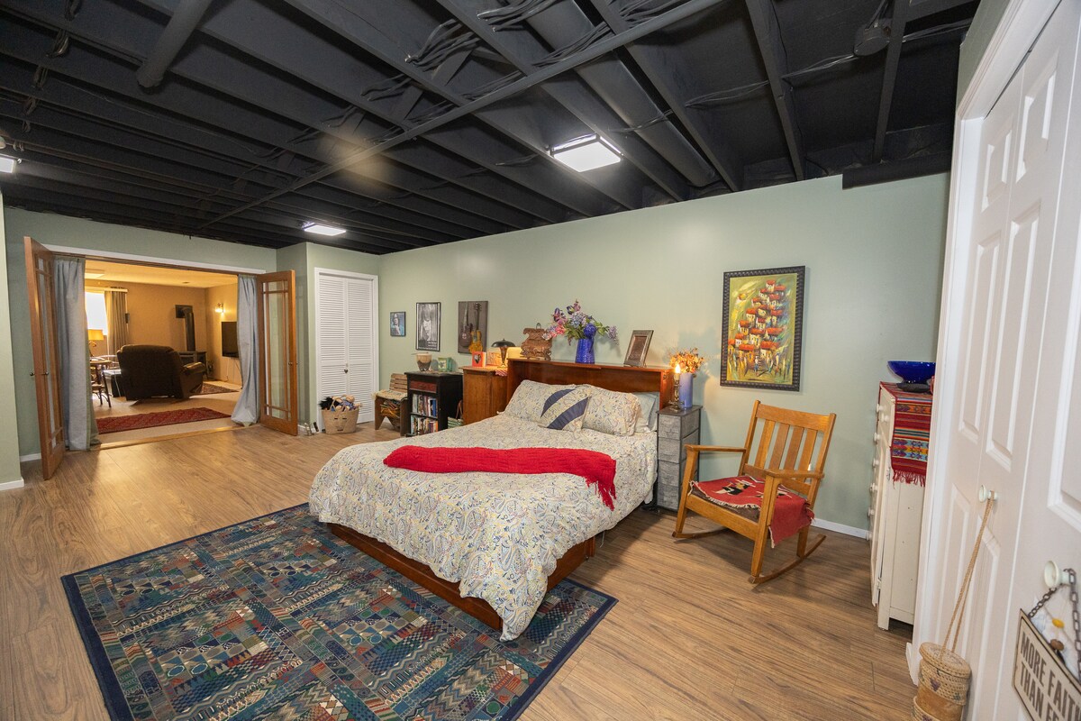 Prairie Rock Suite is a fully furnished apartment in our home’s lower level located on a cul-de-sac just 1 mile east of highway 75. You’ll find recliners, a kitchen w/a table, AND a queen bed that gets rave reviews! Warm towels and a sparkling en suite bathroom are yours. Take in the porch swing, fire pit, WiFi and Smart TV. A great office chair makes working remotely comfortable. The Suite is pet and smoke-free. Serene, clean, private...the Prairie Rock Suite! We’d love to meet you.