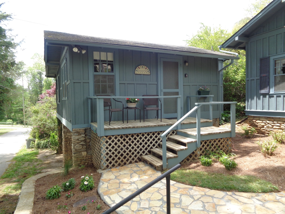 Come stay in our cozy studio apartment, where you can enjoy privacy and comfort. Beautiful Lake Junaluska can be seen after a 5 minute walk. The apartment includes an incredibly soft, custom-made bed (gel memory foam topper; king width, twin length), a night stand, a vintage dresser and two closets, an expandable table for eating or working, two chairs, and a kitchenette. The attached private bathroom completes the space. Maximum occupancy is 2. TWO NIGHT MINIMUM. NO SMOKING. NO PETS.