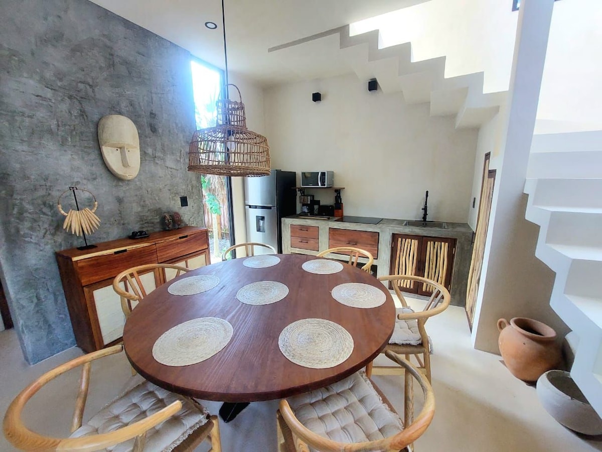 DISKON 15% per minggu HANYA 3 BLOK DARI PANTAI Loteng yang indah dan luas (60m2), bersantai dan terhubung dengan alam, menikmati suara burung dan merenungkan matahari terbenam yang indah. Semua yang Anda butuhkan untuk memasak dengan lanskap impian Kami berkomitmen dengan lingkungan, kami menggunakan energi berkelanjutan Terletak di area perumahan, kami memiliki dekat: • Punta Ciricote, 7 menit berjalan kaki, Anda akan menyukai pantai ini. • Punta Cocos, 8 menit berjalan kaki. • Beach & Beach Club, 5 menit berjalan kaki. • Restoran, 5 menit berjalan kaki.