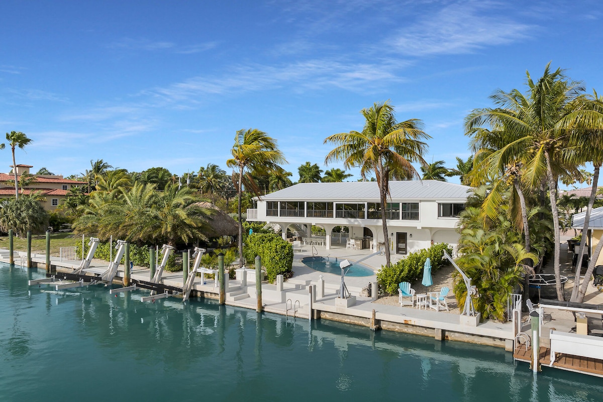 Beautiful Marathon vacation home in the Sombrero Beach area, this waterfront vacation rental is surrounded by lush tropical gardens and a newly constructed pool. Only 300 meters from beautiful Sombrero Beach. Open concept home with wrap around balconies and views of the water. Hurricane impact doors and windows and new metal roof just completed in 2022. It's a 5 star! Tie your boat or kayak up for easy access to the Atlantic Ocean. Family friendly, just 45 minutes from Key West.