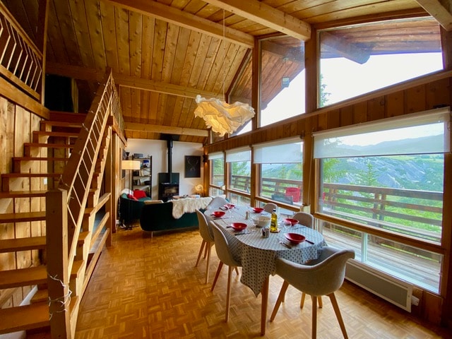 Hangat, nyaman, dan fungsional, Le Cabri adalah sarang kesehatan yang menyenangkan untuk bertemu di malam hari. Chalet semua kayu yang ditanam di tengah - tengah petak berhutan ini memiliki ruang tamu terbuka yang indah dengan pemandangan yang luar biasa dan tiga kamar tidur (tempat tidur + handuk disediakan). Check - in mandiri (kotak kunci) dan disambut oleh concierge kami. Resor ski berjarak dua menit dengan mobil dan antar jemput gratis ke resor selama liburan musim dingin.