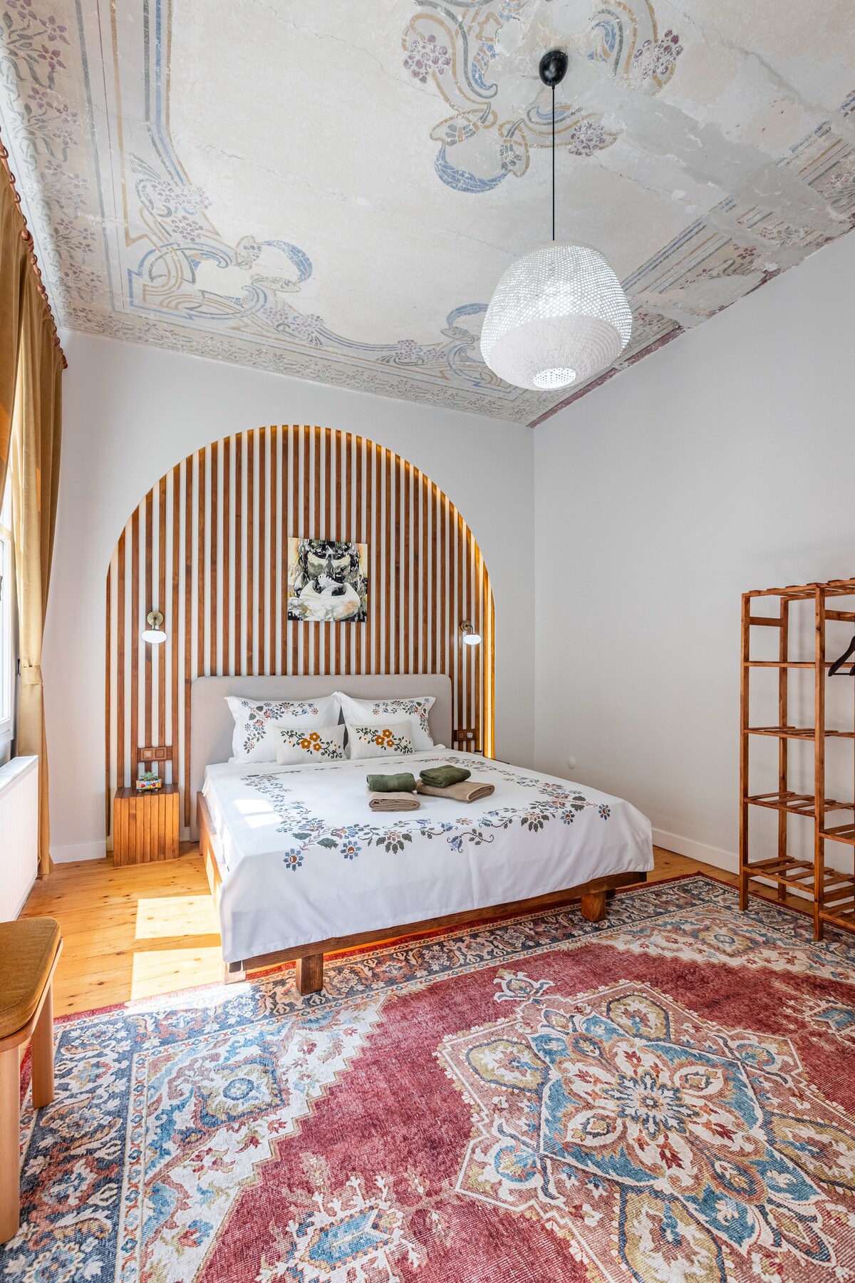 Masuki sepotong sejarah dengan apartemen 5 kamar tidur dan 3 kamar mandi kami yang indah, sebuah permata sejati di tengah - tengah distrik Beyoglu Istanbul yang semarak. Awalnya dibuat oleh arsitek terkenal Giulio Mongeri pada tahun 1904, ruang yang luar biasa ini mempertahankan pesona historisnya dengan langit - langit setinggi 4 meter, dinding asli, pintu, jendela, dan bahkan pintu utama. Dapur ini menampilkan akar klasiknya dengan kompor masak dan range hood yang autentik, menambahkan sentuhan nostalgia pada pengalaman Istanbul modern Anda.