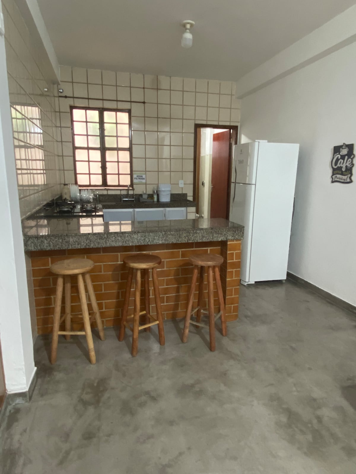 AC, kompor cooktop, kulkas, balkon, barbeku luar ruangan, wastafel cuci pakaian, meja makan, kamar mandi dengan pancuran super KUAT, gula, garam, dan kopi untuk membuat sesuatu, memiliki panci untuk memasak, semuanya diawasi kamera eksternal, kurang dari 200 meter dari apotek, pasar, bar. Nikmati kesederhanaan di tempat yang tenang dan berlokasi baik ini.