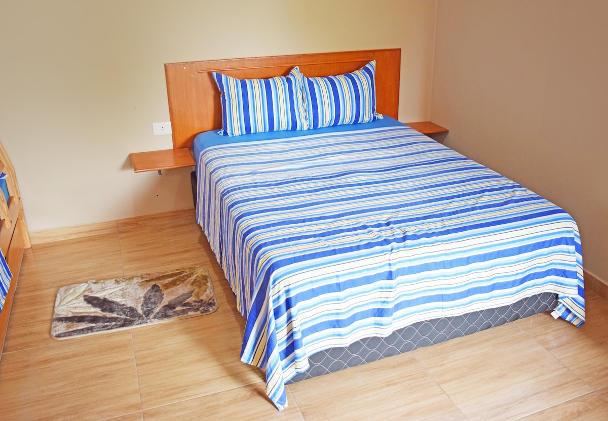 Relajate con toda la familia en este tranquilo alojamiento, Habitación cómoda con cama matrimonial y baño privado. Cocina compartida con elementos básicos ( horno, anafe, jarra eléctrica, utensilios). Piscina , parrillas individuales Desayuno con costo adicional. Ubicada en el tranquilo barrio María Auxiliadora, a solo dos cuadras de la playa Mboi Ka'e, la segunda playa más concurrida de Encarnación.
