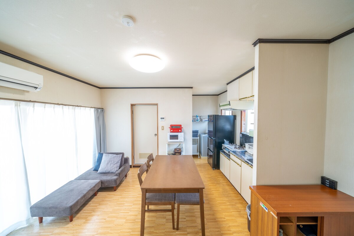 Lantai satu memiliki empat set kasur di ruang tatami., dengan dapur, kamar mandi, dan toilet. Lantai dua memiliki lantai kayu dan dua tempat tidur sirap. Anda bisa menghabiskan waktu yang nyaman bersama keluarga atau rombongan Anda. Microwave, kulkas, mesin cuci, kompor, dan kebutuhan sehari - hari lainnya disediakan. Ada pasar hidangan laut, toko ramen, dan toko swalayan di lingkungan tinggal ini. Ada dapur di kamar, tempat Anda bisa membeli ikan segar dan memasak sendiri.