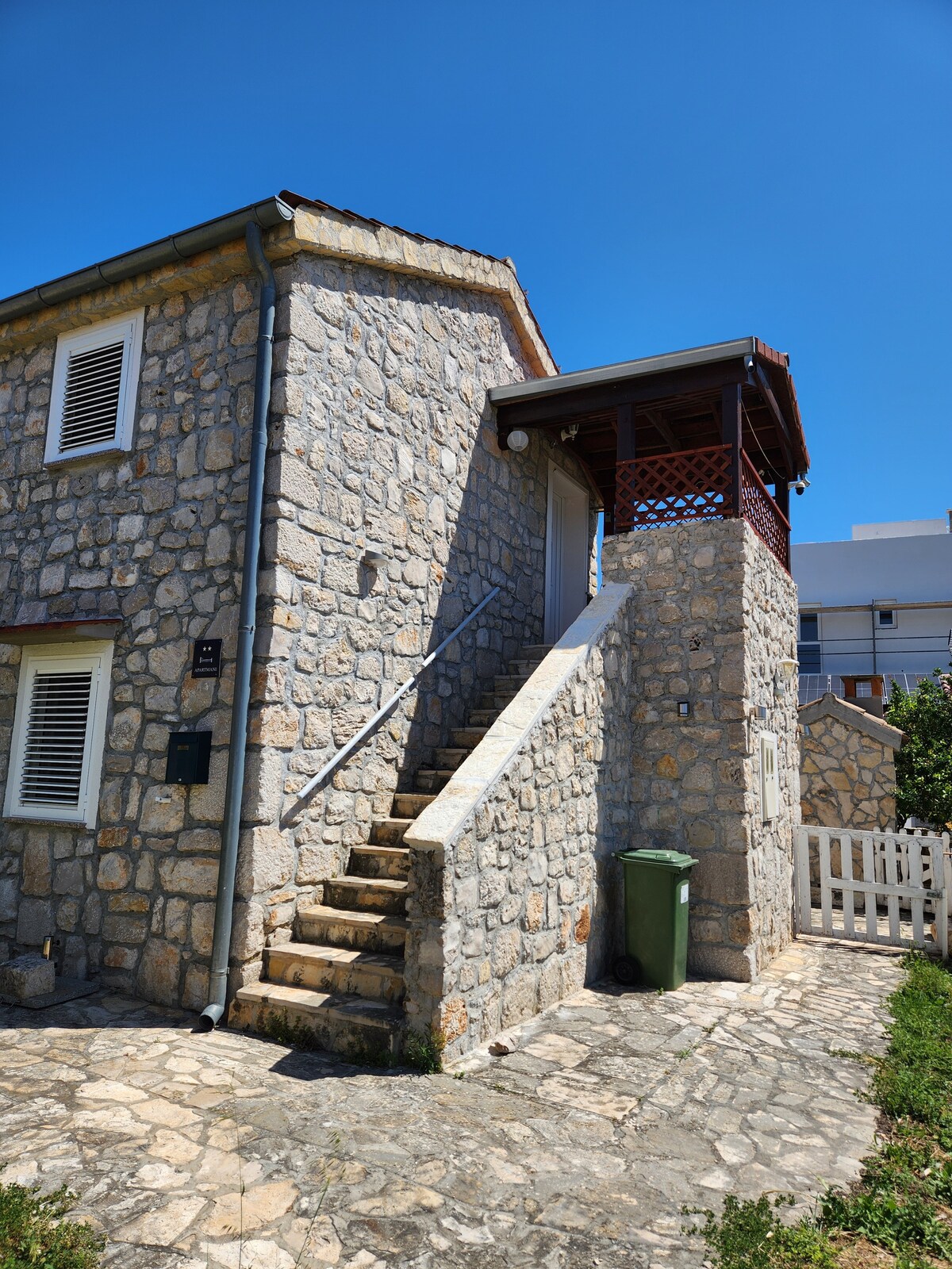 Apartemen ini berada di lantai dua rumah keluarga. Tempat ini memiliki satu kamar tidur, kamar mandi, dan dapur kecil. Kamar tidur juga memiliki sofa di mana satu orang bisa tidur. Terasnya memiliki pemandangan laut dan kota tua yang indah. Kota tua telah disertakan dalam daftar Situs Warisan Dunia UNESCO. Anda akan mengingatnya!