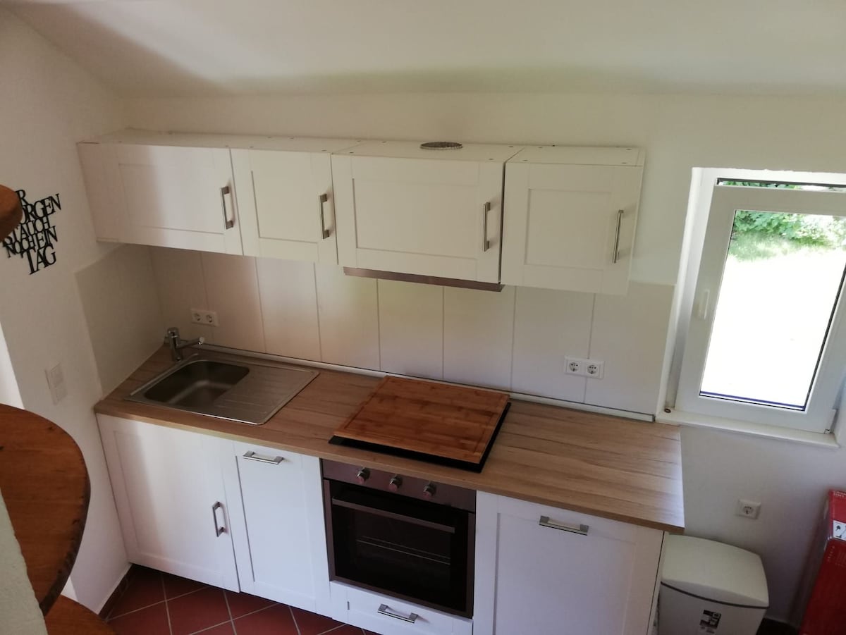 Tempat luar biasa ini biasa saja. Anda menginap di bekas pondok susu, yang secara ekstensif diubah menjadi rumah mungil pada tahun 2023/24. Sebelumnya, para petani desa Gottwollshausen mengantarkan susu mereka ke sana. Hari ini hanya tersisa satu petani, jadi pondok harus dihancurkan. Nasib ini menyelamatkan saya dan istri saya dari pondok susu dan mengubahnya menjadi rumah kecil dengan teras, parkir, dan kenyamanan penuh untuk 2 orang/mungkin 4
