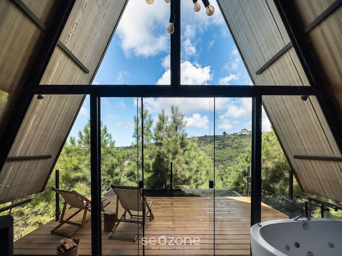 Pondok A Frame, di tengah Pegunungan Mantiqueira. Anda berdiri di tengah semak - semak namun dengan segala kenyamanan, dengan pemandangan Pedra da Baú yang menakjubkan. Kami berada di dalam kondominium pedesaan, dengan penginapan dan tempat lainnya, tempat yang aman dan tenang Lokasi sangat baik, kami berada di antara Santo Antonio do Pinhal dan São Bento do Sapucaí, 25 km dari Campos do Jordão. Pondok ini memiliki dapur yang lengkap, pancuran gas yang sangat panas Kamar mandi kami berada di dek, jadi Anda akan selalu mendapatkan pemandangan terbaik.