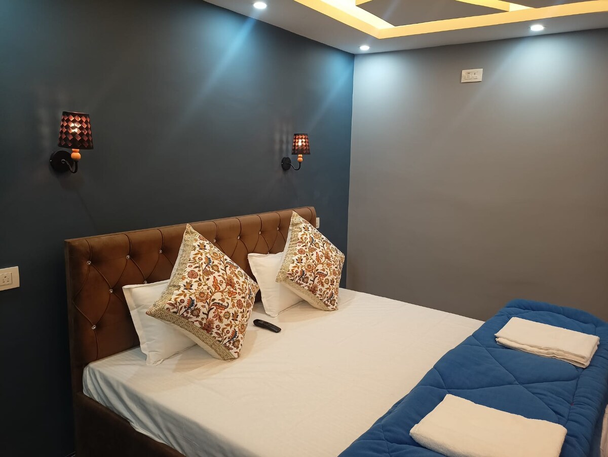 Selamat datang di Airbnb kami yang menawan dan nyaman! Terletak di jantung Srinagar, tempat kami yang dirancang dengan indah menawarkan tempat peristirahatan yang nyaman bagi wisatawan yang mencari rumah sendiri. Saat Anda melangkah masuk, Anda akan disambut dengan suasana yang hangat dan mengundang. Ruang tamu berperabot apik menampilkan sofa mewah, karya seni semarak, dan jendela besar yang memandikan ruang dalam cahaya alami. Ini adalah tempat yang sempurna untuk bersantai setelah seharian menjelajahi kota atau bersantai dengan buku yang bagus.