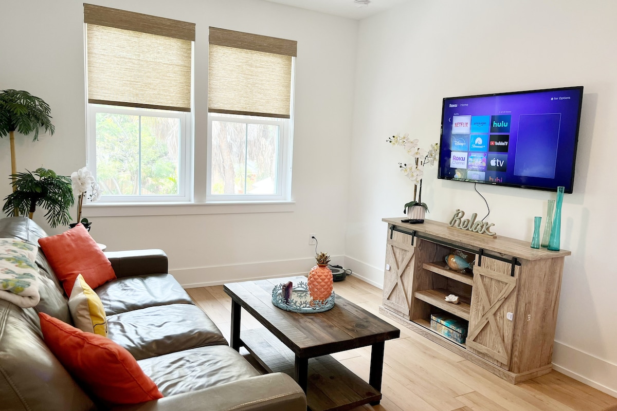 Rosa Parks Studio is spacious, comfortable & completely renovated. A great place for someone to work or relax and unwind. The unit is in St. Pete and comes with everything you need to spend some time away. King size bed, dining table with 4 chairs, desk, bathroom with shower, dedicated a/c, Wi-Fi & TV(Netflix, Hulu, Disney+ & ESPN+). Kitchen includes full size stove/oven & refrigerator, toaster oven, & coffee maker. Check out our guidebook for local favorites around the area!