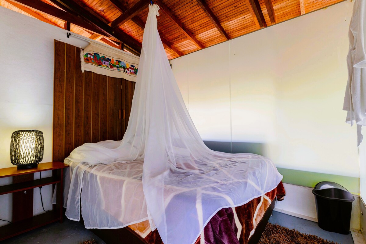 Kabin pribadi yang nyaman untuk 2 orang di lingkungan yang tenang bagi pecinta alam yang hanya berjarak 2 km dari kota, sempurna untuk berjalan - jalan sambil menikmati pegunungan kopi! Sarapan khas dengan produk dari peternakan dan wilayah ini sudah termasuk :) Ada WiFi dan juga di rumah utama Anda akan menemukan ruang TV, permainan meja, bulu tangkis, tempat tidur gantung, dan dapur bersama yang bisa Anda gunakan. Ada kebun indah dengan banyak bunga dan pohon buah - buahan yang dikunjungi oleh banyak spesies burung dan zona BBQ.