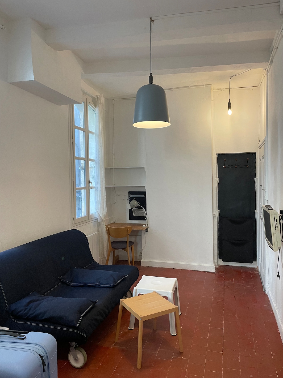 Studio bagus di lantai 2 di sebuah bangunan yang terletak di tengah - tengah area pejalan kaki Avignon. Benar - benar direnovasi, dilengkapi perabotan dan ber - AC. Sangat cerah. Lokasi yang luar biasa. Terletak di pusat kota, dekat dengan Place Pie, Place St Didier dan semua fasilitas (dalam jarak berjalan kaki 100 m: laundry, kota Carrefour, toko roti, restoran, bar, ...) Tidak ada restoran/bar lantai dasar di lantai dasar. Jendela berlapis ganda dan perlengkapan tempat tidur yang bagus!