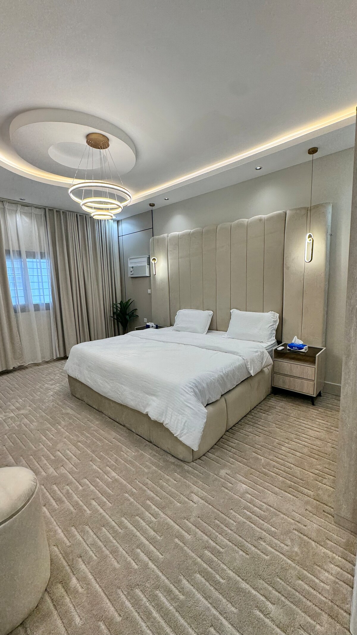 Kamar hotel dan lounge yang elegan dan mewah dengan furnitur yang sempurna untuk bersantai, nyaman dan check-in mandiri yang tenang Terletak dekat tempat wisata Lokasi Sangat Unggulan Bandara berjarak 15 menit Semua layanan tentang perumahan tersedia OpenNet 200MB tersedia Langganan VIP Saksikan Mendaftar Netflix Detail lokasi: Kamar tidur utama, sesi samping, desain modern yang elegan, layar besar yang cerdas dan kamar mandi dengan desain yang elegan Sudut kopi keramahtamahan gratis terintegrasi yang dirancang untuk memenuhi semua kebutuhan tamu untuk pengalaman unik dan khas di kota Jazan