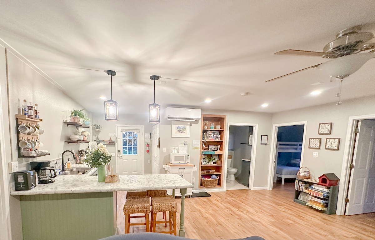 Camelot Valley adalah tempat pendaratan untuk menjelajahi Sunny Sequim dan Taman Nasional Olimpiade! Unit hunian terlampir ini ramah keluarga dan menawarkan dapur dengan mesin cuci piring, jangkauan, kulkas, mesin cuci/pengering kecil yang dapat ditumpuk & sauna luar ruangan! Tempat yang nyaman ini terletak di lahan seluas 5 hektar di jalan pribadi kerikil lengkap dengan beberapa hewan ternak yang menggemaskan. Dengan pintu masuk luar pribadi; suite tamu seluas 800 kaki persegi ini memiliki 2 kamar tidur, 1 kamar mandi lengkap, wi - fi dan ruang tamu/dapur.