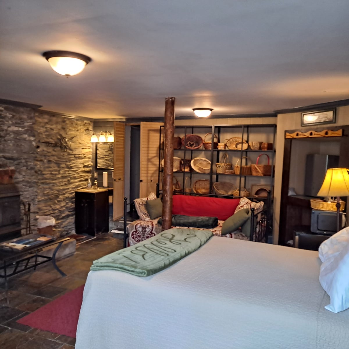 Selamat datang di suite lantai dasar kami yang besar. Dibangun di rumah juru masak batu asli. Nikmati dinding batu indah yang menceritakan kisah para pemukim awal dan tenaga kerja mereka. Kamar ini dapat diakses oleh penyandang disabilitas dan memiliki pintu masuk pribadi dan tidak ada tangga. Tempat tidur King dan kamar mandi en suite yang dipenuhi cahaya yang indah.