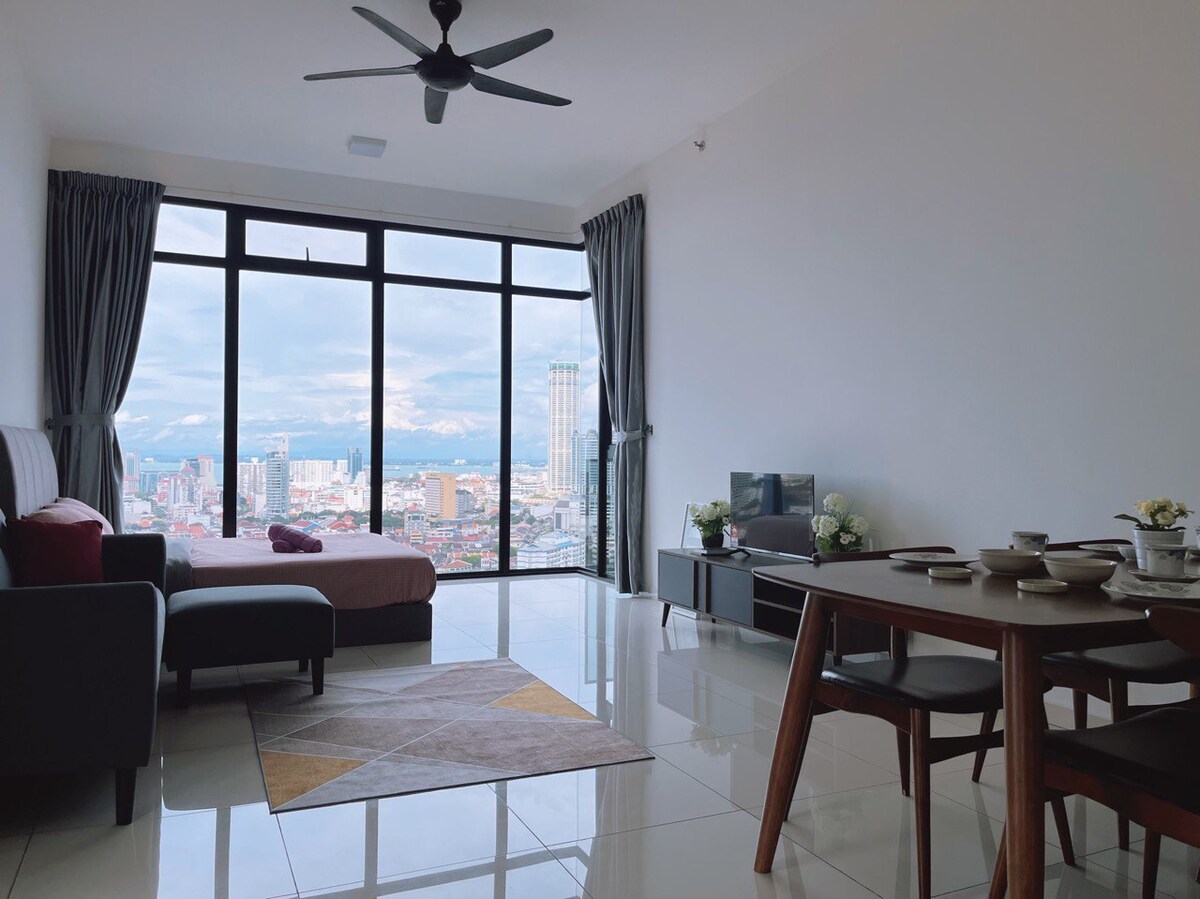 WiFi gratis, dilengkapi dengan smart lock, pemanas air, AC, microwave, dan filter air yang dapat langsung meminum air panas dan dingin. Gratis 2 tempat parkir juga. Sangat dekat dengan Karpal Singh, 5 menit ke Georgetown dengan pemandangan laut dan pemandangan kota yang luar biasa. Anda akan dapat melihat jembatan Penang, pemandangan laut, Komtar dari unit ini. Terletak di lantai 36 juga. Jika Anda membutuhkan sesuatu, bisa mengobrol dengan saya, karena saya tinggal di dekat sini.