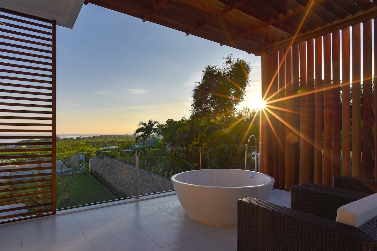 Selamat datang di Villa Sedang! Villa modern yang luas dengan taman yang subur, kolam renang infinity dengan pemandangan laut. Banyak area lounge untuk bersantai dan meremajakan diri Anda. Layanan yang disertakan: *Chef untuk membuat 3 hari makan (Anda membayar bahan - bahan) *Pembersihan setiap hari * Perencanaan tamasya Layanan Opsional: *Mobil dengan sopir berbahasa Inggris *Perawatan pijat dan spa * Opsi tamasya dan tur Kami dengan senang hati merekomendasikan tempat terbaik untuk dikunjungi berdasarkan pengalaman kami dan mengatur segalanya untuk Anda.