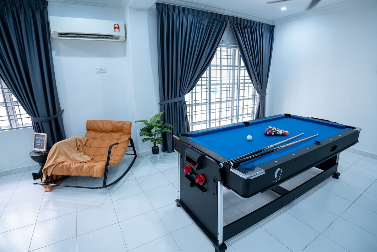 Bersantai bersama seluruh keluarga di tempat menginap yang damai ini. Kami adalah homestay ramah anak - anak yang menyediakan taman bermain anak - anak dalam ruangan dan kolam renang untuk mereka bersenang - senang. Kedalaman kolam renang dari 20cm hingga 90cm, aman bagi anak - anak Anda untuk bersenang - senang. Kami juga menyediakan dapur basah & kering jika Anda ingin menikmati memasak selama menginap. Kami juga memiliki kursi pijat model baru untuk Anda benar - benar bersantai dan menikmati masa inap Anda. Semua kasur yang kami gunakan bermerek untuk memastikan Anda beristirahat dengan baik.