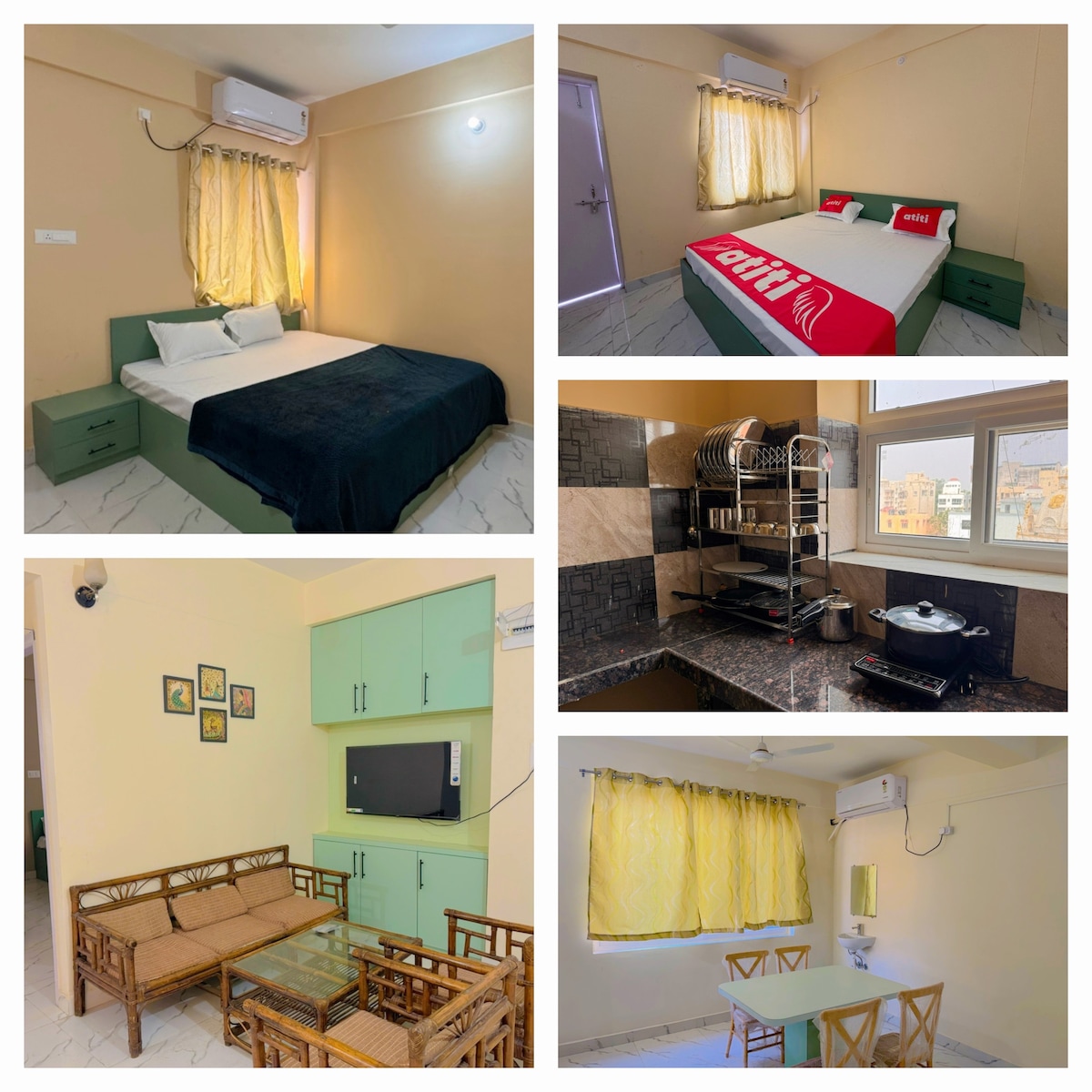 ✅ Pura – 1 km | ~9 km dari Stasiun Jasidih dan Bandara ✅ 2 kamar tidur 1 kamar mandi dengan kamar AC, kamar mandi di dalam, dan pemanas air ✅ Dapur lengkap ✅ Restoran & toko di dekatnya — Zomato & Blinkit tersedia ✅ Parkir mudah 🚗 ✅ Dapat menampung hingga 6 orang dewasa (atas permintaan) Catatan: Harap matikan AC & lampu saat keluar. AC dan lift berfungsi saat listrik tersedia. Pemadaman listrik jarang terjadi. Waktu check-in & check-out sangat ketat karena pemesanan yang terus menerus dan jadwal kebersihan.
