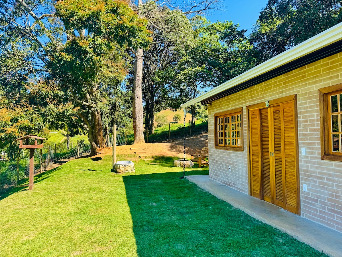 ✨ Última oportunidade para este fim de semana com clima perfeito — ideal para casal relaxar em meio à natureza com piscina aquecida e silêncio total. Descubra a magia da Serra da Mantiqueira em nosso chalé encantador! Encontre refúgio a apenas 15 km de Joanópolis e 22 km de Monte Verde, cercado por rios cristalinos e cachoeiras deslumbrantes. Você terá o prazer de despertar com vista para um sereno lago, montanhas majestosas e uma vasta área verde.