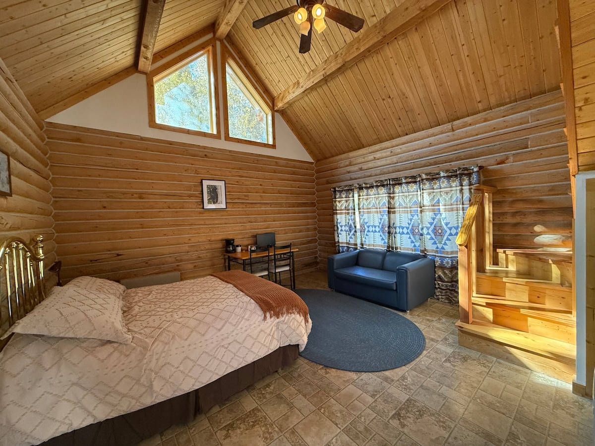 Bersantai di pondok buatan tangan kami dengan pemandangan danau, hanya 10 menit dari Buffalo & 20 dari Sheridan. Terletak di 35 hektar yang indah dengan peternakan kecil, ayam, dan Buddy si burung merak pencinta blueberry, tempat menginap yang nyaman ini menawarkan susu & telur segar selama masa inap Anda. Ruang seluas 700 kaki persegi ini memiliki kamar tidur king dan tempat tidur Murphy di ruang besar, ditambah patio pribadi dengan BBQ. Kami dekat jalan raya antar negara bagian, akses mudah, meskipun mungkin ada kebisingan jalan. Pondok ini milik Anda, kami tinggal di dekatnya jika Anda membutuhkan sesuatu
