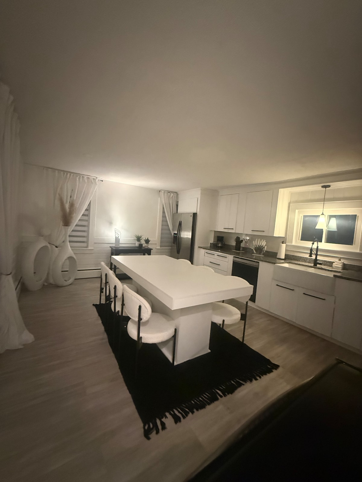 Selamat datang di loteng industri unik yang menampilkan bata terbuka, langit-langit tinggi, dan jendela berukuran besar. Rasakan eksklusif saat Anda masuk melalui foyer pribadi. Studio terbuka dengan pemandangan kota mencakup dapur modern dengan dinding biru tua yang berani, tempat tidur king dengan tirai gelap, ruang kerja, dan kamar mandi seperti spa. Berjalan kaki ke College Hill, State House, dan bersantap di tepi sungai. 1 mil ke kereta, 15 menit ke bandara.